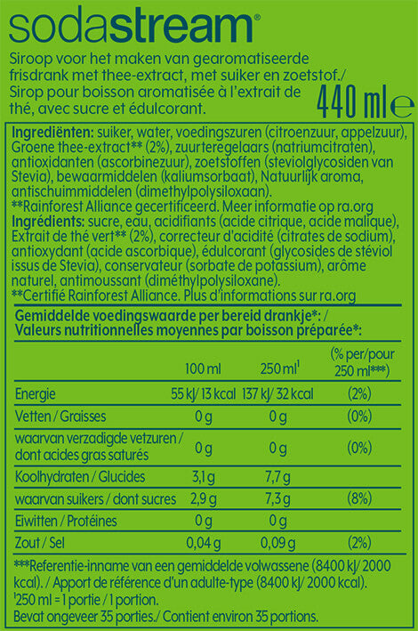 With one bottle of SodaStream syrup, you can make up to 9 liters of sparkling soda: quick, easy, and always fresh. Simply add the right amount of syrup to your sparkling water and enjoy your favourite drink anytime, anywhere.