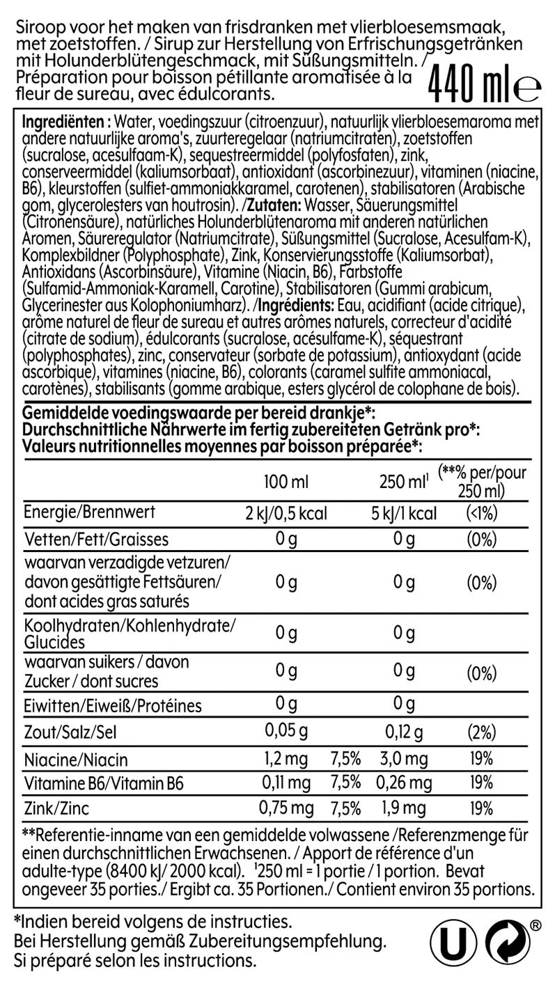 With the SodaStream Elderflower Zero 6-pack, you add a refined, floral elderflower flavor to your sparkling water. Enriched with extra vitamins and minerals, this refreshing drink provides a thirst quencher without sugar, perfect for any time of the day.