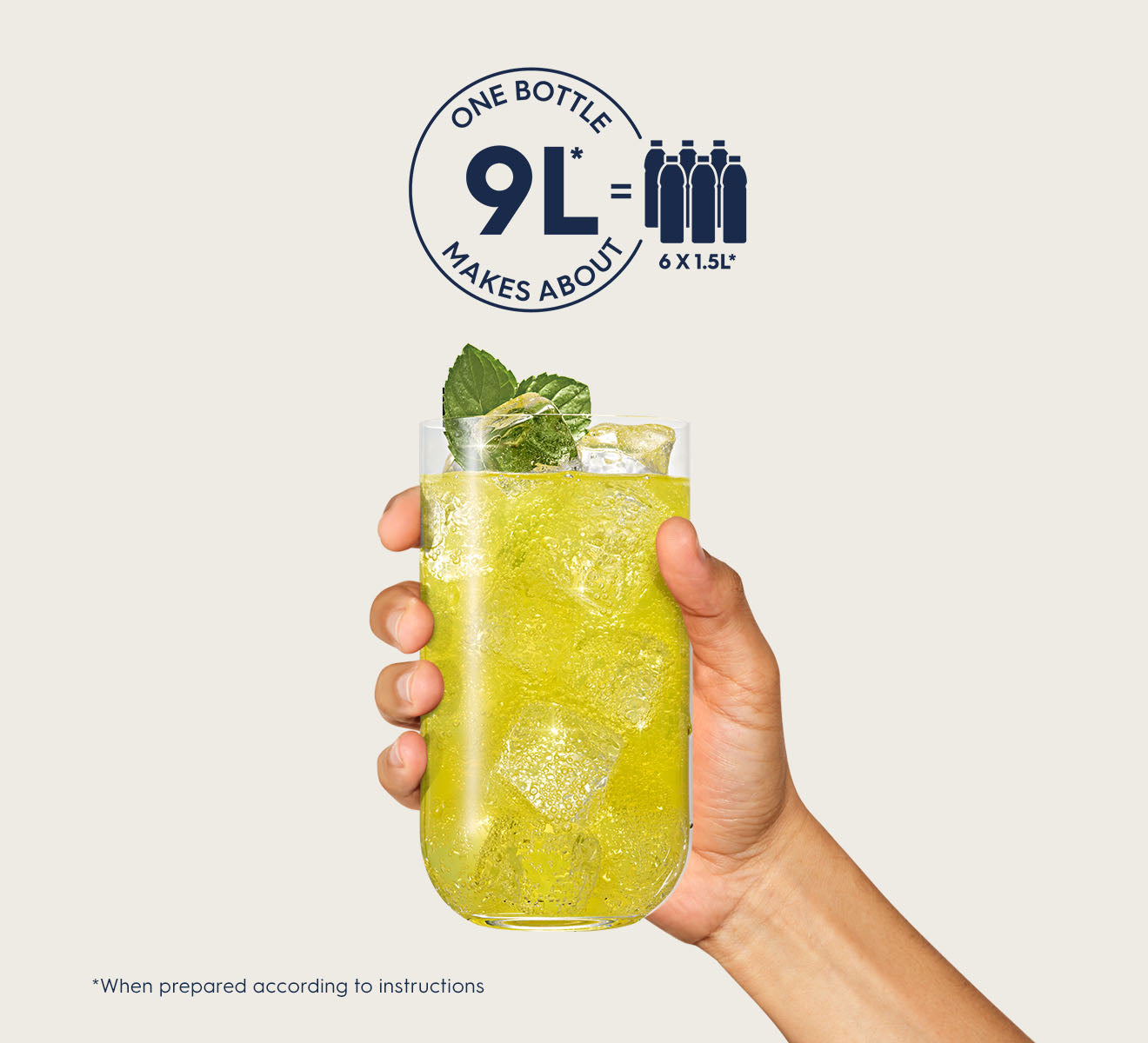 One bottle of syrup from SodaStream makes up to 9 liters of sparkling drink, which you can prepare fresh in no time. Simply add the recommended amount of syrup to sparkling water in a SodaStream bottle and enjoy your favourite drink wherever and whenever you like. For more information on ingredients and nutritional values, check the nutrition table.