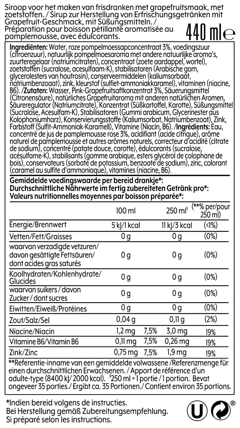 Discover the renewed recipe of the SodaStream Pink Grapefruit Zero 6-pack. Give your sparkling water a refreshing, fruity taste of grapefruit, enriched with an extra boost of vitamins and minerals. Completely sugar-free!