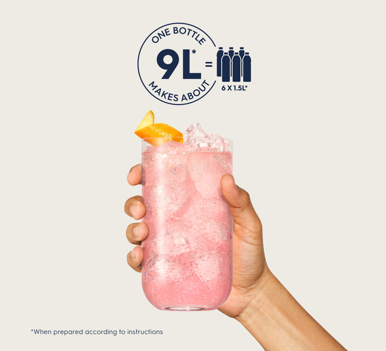 With one bottle of SodaStream syrup, you can make up to 9 liters of sparkling drink. Simply add the right amount of syrup to sparkling water in a SodaStream bottle, and you’ll have a refreshing drink in no time, perfect for any moment. Check the nutrition table for more information about ingredients and nutritional values.